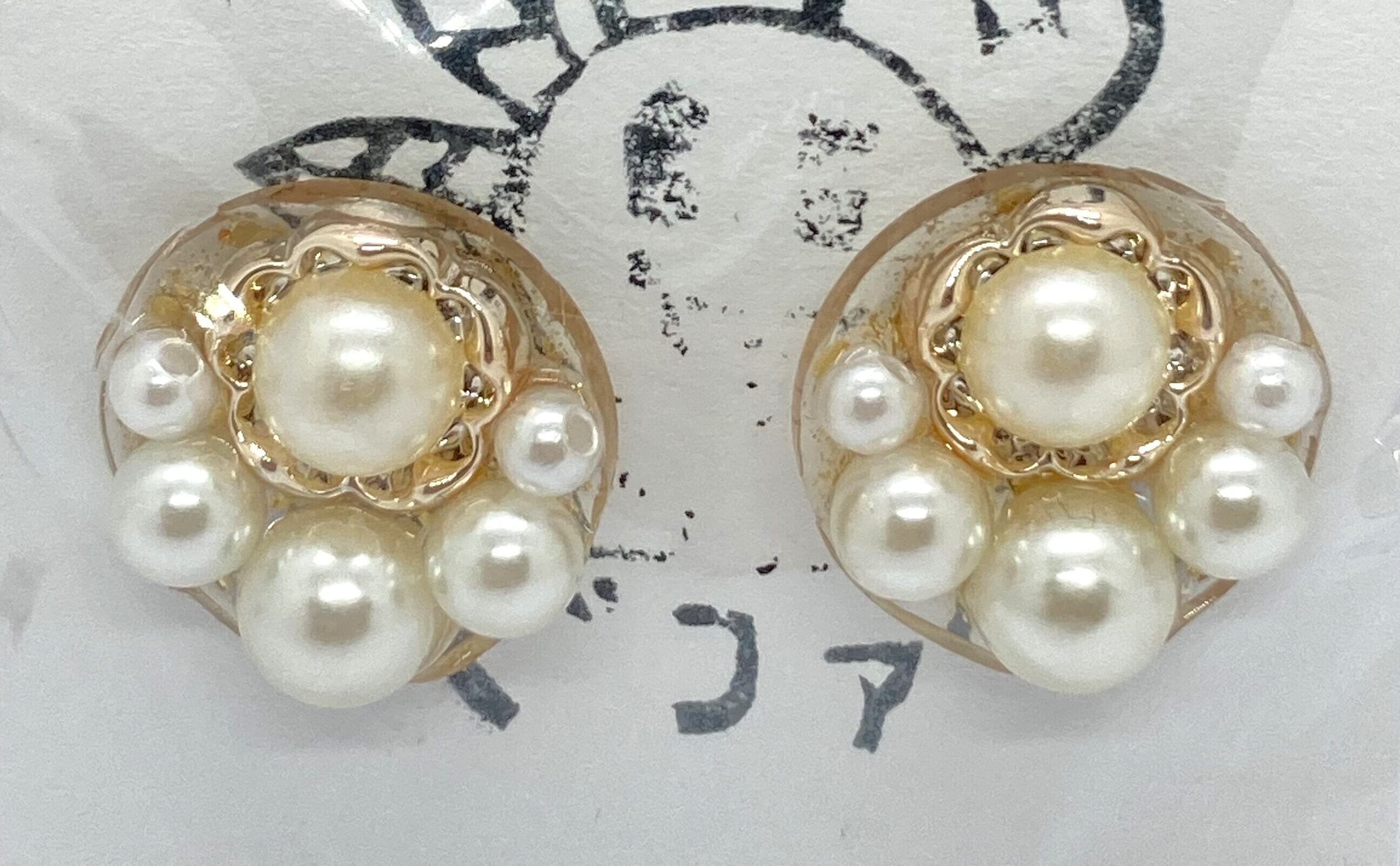 円形の土台の上に、大きさの違うパールがのっているイヤリング。